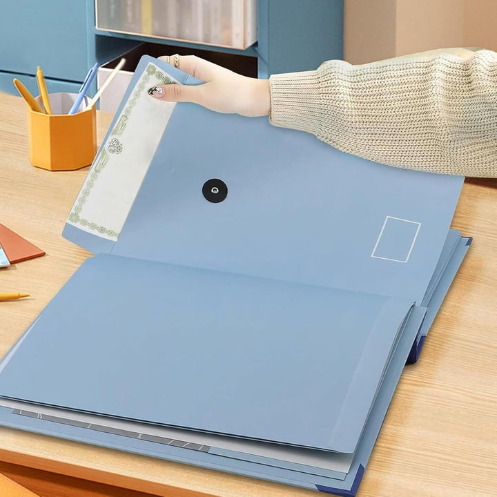 - 12 Expandable Pockets for Comprehensive Storage:This organizer offers 12 expandable pockets that can securely hold various document sizes, from full-sized 8.5"x11" or A4 papers to smaller items like passports. Whether you’re organizing essential legal forms or personal mementos, the Folders with Pockets provide a versatile solution to keep everything in one place.
